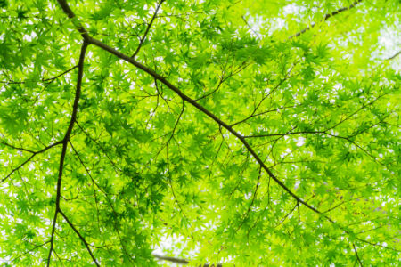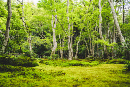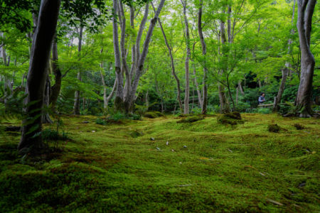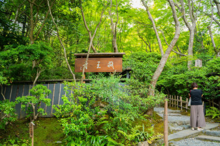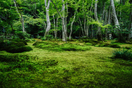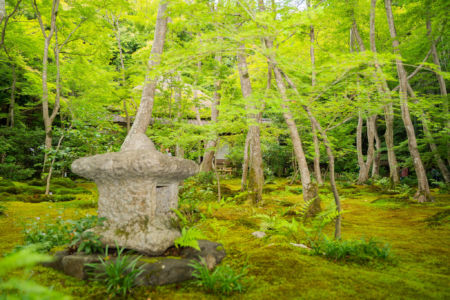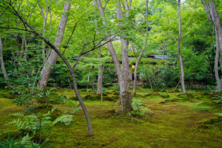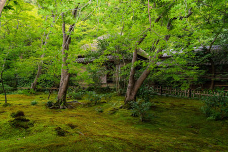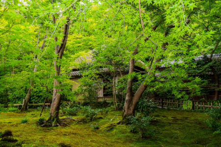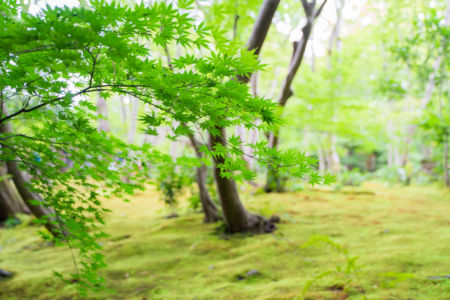 緑豊かで風情があり美しい苔の庭園を楽しむことができます。青もみじに覆いつくされた空間が広がっています。
