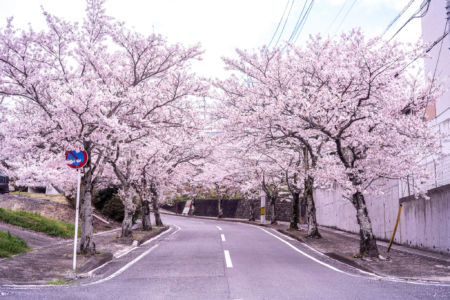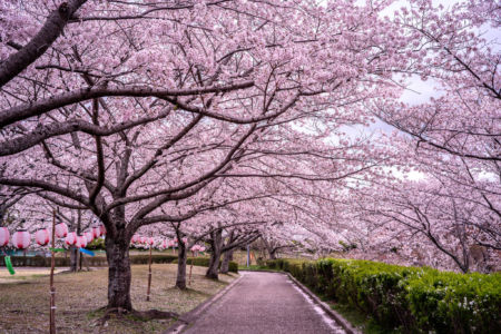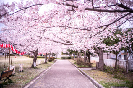 公園の歩道横にはたくさんの桜の木があり綺麗でした。