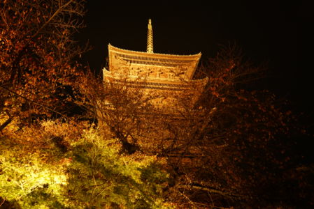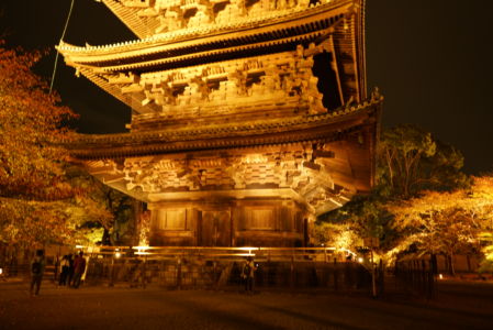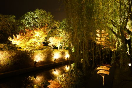 東寺は昼間に一度行ったことがありますが、夜だと光きらびやかで五重の塔に圧倒させられます。ライトアップがあるので夜の京都を楽しめる時期です。いつもは夕方で神社・寺は閉館してしまうので帰ってしまいます。ライトアップのイベントはたくさんあるので自分が見たい場所を絞ってまわりましょう!