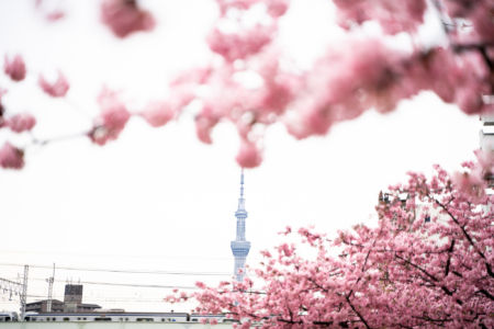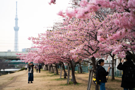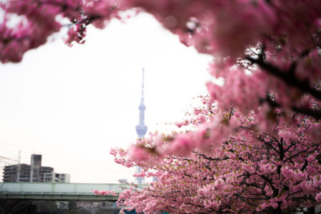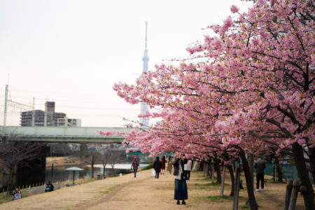東京スカツリーと河津桜のコラボレーションが撮れる場所があったので写真撮りに行ってきました!