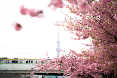 旧中川の河津桜よかったです!すごく撮りやすかったですし、スカイツリーと河津桜と電車のコラボレーションが撮れました。